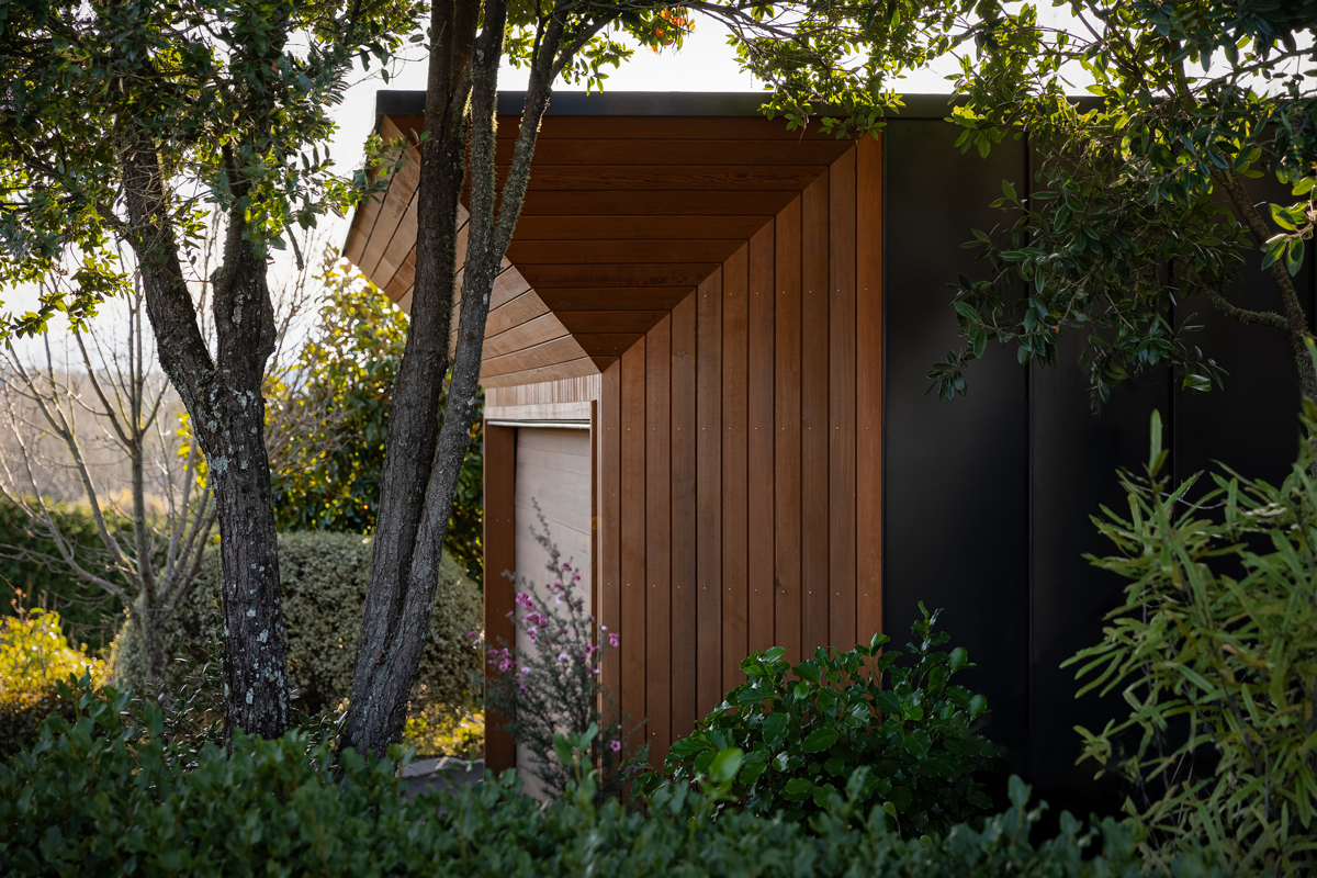 This extension to an existing garage on an architecturally designed house resolved the problem of limited storage for a young family and the challenge to come up with a design sensitive solution that would greet visitors as they entered the property.
