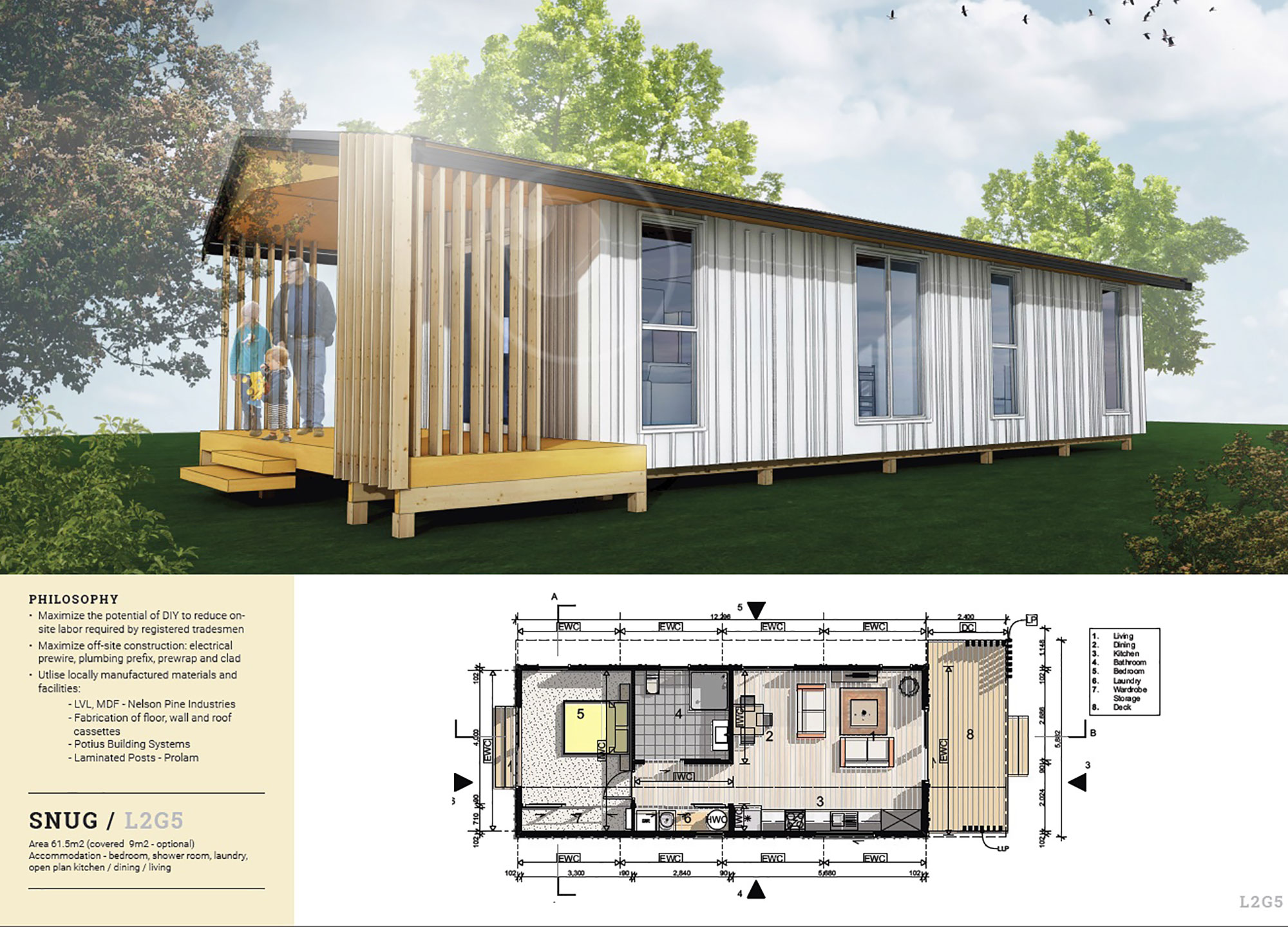 This building had to be small, stylish and cost effective while having the means to be erected and dismantled in back yards throughout NZ with minimal means of access. The design was a finalist in the competition.