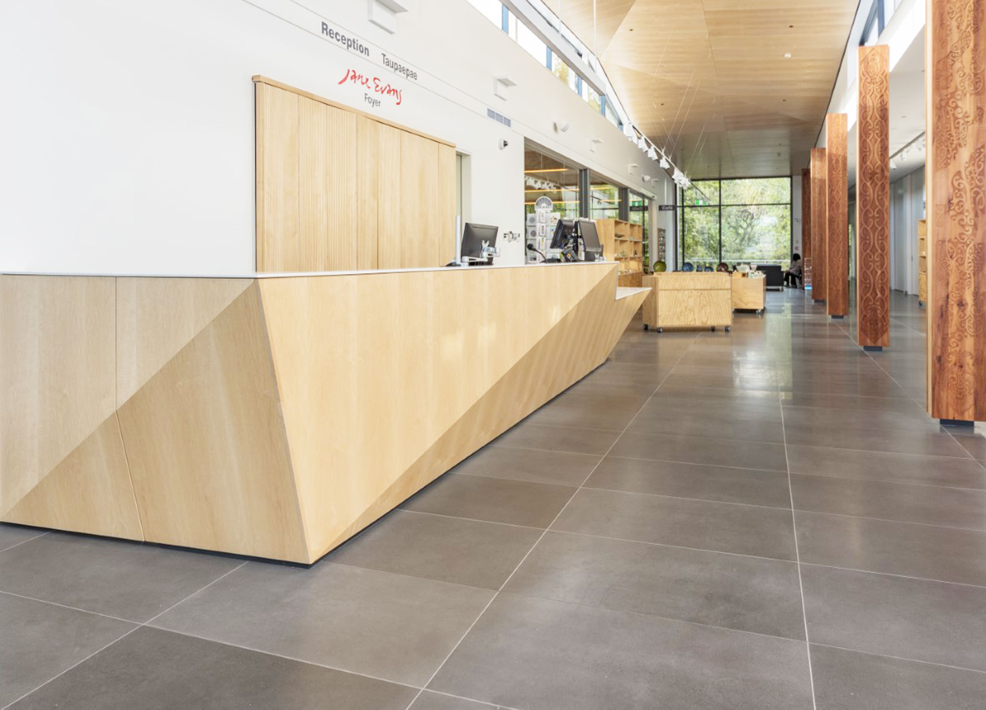 A sculptural and sympathetic addition to the foyer in the new Suter Gallery where my principal role was as documentation architect. The desk was recipient of a joinery award and the Suter itself of numerous local and national awards.